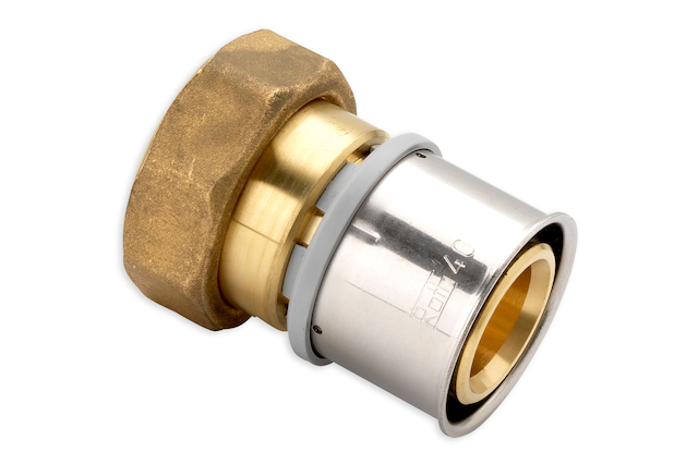 Roth Anschlussverschraubung 25mm x 1"IG/'Tichelmann' Verschraubung fuer den stirnseitigen An- schluss von Roth Systemrohr Alu-Laser- plus an den Roth Sportbodenverteiler Tichelmann. Aus Messing inklusive Stuetzkoerper und Flachdichtung, mit Pressanschluss fuer Roth Systemrohr Alu- Laserplus und ueberwurf-Verschraubung. Der Verschraubungskoerper ist flach- dichtend fuer loesbare Anschluesse aus- gelegt. ACHTUNG! Nicht kompatibel mit Roth Systemrohr DUOPEX S5 25 mm.