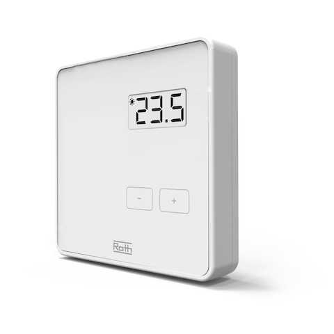 Roth Funk-Raumbediengeraet Touchline PL Project Zur Funk Einzelraumregelung in Verbindung mit Funk-Anschlussmodul Touchline PL oder Touchline SL. Einfache und komfortable Bedienung durch Sensortasten und LCD-Display. Die Funk-Reichweite betraegt ca. 30 m, die Signalstaerke kann am Funk- Anschlussmodul angezeigt werden. Mit Tastensperr-Funktion ohne Passwort Schutz. Geeignet fuer Wandmontage und auf Standard 60 mm Unterputzdose. Einschlieich zwei Batterien Typ AAA.