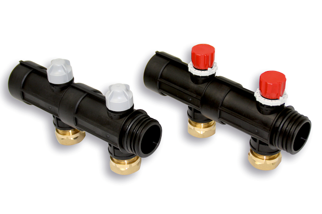 Roth Industrieverteiler 1 1/2"x25 HK 3 ohne DFA Der Roth Industrieverteiler 1 1/2" ist aus starkwandigem Kunststoff (PA 66) gefertigt. Dadurch ist der Verteiler sehr leicht und montagefreundlich. Die einzelnen Verteilersegmente werden durch Gewinde miteinander verbunden und sind auf bis zu 20 Heizkreise erweiter- bar. Die Rohranschluesse (Messing-Klemmring- verschraubungen) sind fuer die Roth Systemrohre DUOPEX S5 25 mm und X-Pert S5+ 25 mm ausgelegt. Durch den Abstand von 100 mm zwischen den einzelnen Anschluessen wird ein optimaler Montagekomfort gewaehrleistet. Die Vorlaufverteiler sind mit Regulier- ventilen ausgestattet. Ruecklaufsammel- seitig stehen Hubventile M30x1,5 mm zur Verfuegung. Optional lassen sich die Roth Stellantriebe auf den Gewinden der Hubventile montieren. Die Heizkreise lassen sich sowohl vorlauf-, als auch ruecklaufseitig einzeln absperren. Zu jedem Verteiler ist ein Grund- paket erforderlich und separat mitzu- bestellen. Verpackungseinheit: 1 Stueck = 1 Set (bestehend aus Vorlaufverteilerstamm und Ruecklaufsammelerstamm) Technische Daten maximale Betriebstemperatur 60 Grad minimale Betriebstemperatur -20 Grad maximal zulaessiger Betriebsdruck 6 bar