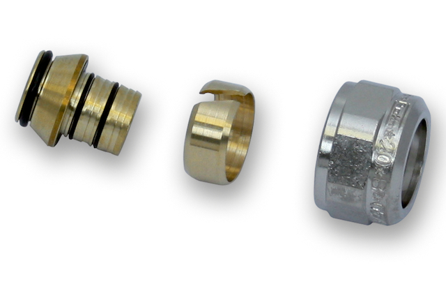 Roth Klemmverschraubung 14mm/Messing Fuer den direkten Anschluss der Roth Systemrohre Alu-Laserplus an Heizkoerper- ventil-Fremdfabrikate mit 3/4" AG und Eurokonus bzw. an Hahnbloecke mit Euro- konus und 3/4" AG bei Ventil-Kompakt- heizkoerpern. Bestehend aus einer MS- ueberwurfmutter 1/4" vernickelt, Klemm- ring, Stuetzkoerper mit Eurokonus aus entzinkungssbestaendigem Messing.