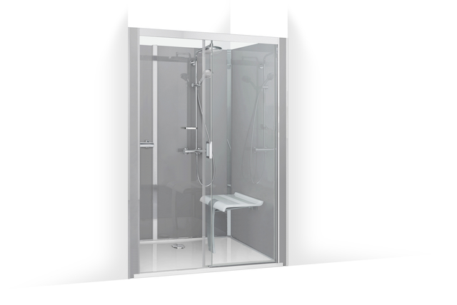 Roth Komplettdusche Vinata Comfort Ni Hoch anthrazit 1560x677 ESG klar Mit der Roth Komplettdusche Vinata ist der schnelle Austausch einer alten Badewanne gegen eine komfortable Dusche moeglich. Das innovative Renovierungs- konzept besteht aus einer hochwertigen Glas-Schiebetuer, Glas-Rueckwaenden und einer Mineralgussduschwanne. Die Dusche selbst ist aufgrund der hohen werkseitigen Vormontage in rund drei Stunden montiert. Roth Vinata gibt es in zwei Ausfuehrungen. Das Modell Spirit ist eine grouegige Duschloesung fuer die ganze Familie. Die Variante Comfort steht fuer eine komfortable und sichere Nutzung im Alter. Zur Ausstattung gehoeren eine Halterung fuer die Montage des Vinata Duschklappsitzes und zusaetzliche Haltegriffe (Comfort). Die Qualitaetsdusche ist mit Glas- Schiebetueren ausgestattet. Die Montage ist in Eck- und Nischensituationen moeglich. Die Glasrueckwaende sind in weioder anthrazit erhaeltlich. Das hochwertige Brause-Set mit Thermostatmischer von Hansgrohe ist auf das moderne Design der Roth Vinata abgestimmt. Die integrierte Mineralgussduschwanne mit niedrigem Einstieg bietet stabilen Stand. Die rutschfeste Standflaeche (nur Ausfuehrung Comfort) entspricht der Bewertungsklasse C DIN 51097 (PN24). Alle Glaselemente bestehen aus sechs Millimeter starkem Einscheibensicherheitsglas mit ETC- Beschichtung (Easy To Clean). Das Glas der Schiebetuer ist in klar oder mit Flowdekor erhaeltlich. Die Roth Vinata gibt es in Breiten von 1200 bis 1700 mm und Tiefen von 700 bis 900 mm.