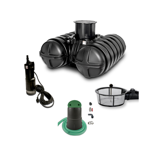 Roth Komplettpaket Gartenbewaesserung 10000 Liter/mit Tauchpumpe Roth Komplettpaket Gartenbewaesserung Regenwasser-Komplettpaket inkl. Schacht- system mit integriertem Filterkorb. Die Anlagen werden wahlweise mit bzw. ohne Tauchpumpe angeboten. Die Behaelter bestehen aus hochwertigem PE und sind erdstabil. Die Regenwasser-Erdspeicher Komplettan- lage ist mit dem Roth Domschachtsystem mit integriertem Filterkorb ausgeruestet, bestehend aus Domschacht zur Hoehenan- passung stufenlos verstellbar mit begeh- barem Aundeckel und Filterkorb. Sollen die Behaelter PKW-befahrbar sein, muss die "Schachtabdeckung PKW-befahrbar (1135005438)" als Zubehoer mitbestellt werden. Der Behaelter besitzt einen ueberlauf- siphon mit Kleintiersperre DN 100. Zum Anschluss der Versorgungsleitungen stehen zwei sich gegenueberliegende Leer- rohrstutzen zur Verfuegung, die wahlweise genutzt werden koennen. Der Roth Filterkorb hat eine Maschen- weite von 1 mm und muss in regelmaegen Abstaenden vom Anlagenbetreiber auf Ver- schmutzung kontrolliert und gereinigt werden. Die Roth Tauchpumpe kann im Behaelter als Tauchdruckpumpe eingesetzt werden. Die Pumpe besitzt einen integrierten Durch- flusswaechter mit elektronischer Ein- und Ausschaltautomatik, der ein sicheres Abschalten im Trockenlauf gewaehrleistet. Das Roth Entnahmeset besteht aus einem kleinen Bodenschacht mit gruenem Kunst- stoffdeckel, 12,5 m Druckspiralschlauch und einem Schlauchanschluss fuer gaengige Gartenschlauchsysteme.