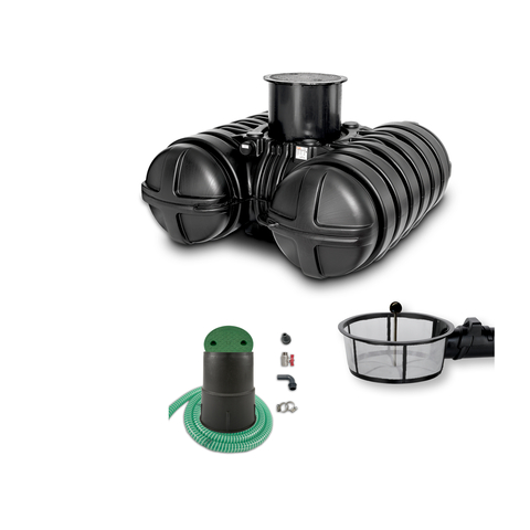 Roth Komplettpaket Gartenbewaesserung 7000 Liter/ohne Tauchpumpe Roth Komplettpaket Gartenbewaesserung Regenwasser-Komplettpaket inkl. Schacht- system mit integriertem Filterkorb. Die Anlagen werden wahlweise mit bzw. ohne Tauchpumpe angeboten. Die Behaelter bestehen aus hochwertigem PE und sind erdstabil. Die Regenwasser-Erdspeicher Komplettan- lage ist mit dem Roth Domschachtsystem mit integriertem Filterkorb ausgeruestet, bestehend aus Domschacht zur Hoehenan- passung stufenlos verstellbar mit begeh- barem Aundeckel und Filterkorb. Sollen die Behaelter PKW-befahrbar sein, muss die "Schachtabdeckung PKW-befahrbar (1135005438)" als Zubehoer mitbestellt werden. Der Behaelter besitzt einen ueberlauf- siphon mit Kleintiersperre DN 100. Zum Anschluss der Versorgungsleitungen stehen zwei sich gegenueberliegende Leer- rohrstutzen zur Verfuegung, die wahlweise genutzt werden koennen. Der Roth Filterkorb hat eine Maschen- weite von 1 mm und muss in regelmaegen Abstaenden vom Anlagenbetreiber auf Ver- schmutzung kontrolliert und gereinigt werden. Die Roth Tauchpumpe kann im Behaelter als Tauchdruckpumpe eingesetzt werden. Die Pumpe besitzt einen integrierten Durch- flusswaechter mit elektronischer Ein- und Ausschaltautomatik, der ein sicheres Abschalten im Trockenlauf gewaehrleistet. Das Roth Entnahmeset besteht aus einem kleinen Bodenschacht mit gruenem Kunst- stoffdeckel, 12,5 m Druckspiralschlauch und einem Schlauchanschluss fuer gaengige Gartenschlauchsysteme.