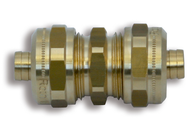 Roth Kupplung 14mm/Messing Bestehend aus einem Doppelnippel und zwei Klemmverschraubungen fuer die Ver- bindung der Roth Systemrohre DUOPEX S5, X-PERT S5+ und Heizrohre PERTEX S5.