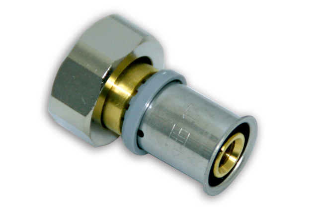 Roth Pressverschraubung 17mm Fuer den Anschluss aller Roth Systemrohre an den Roth Heizkreisverteiler Uni- versal, den Roth Heizkreisverteiler mit Durchflussanzeige absperrbar und dem Roth RG-Verteiler TW. Bestehend aus Messing-ueberwurfmutter IG 3/4", Messing Stuetzkoerper mit Eurokonus und Edelstahl-Huelse.