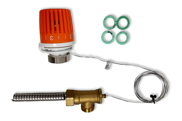 Roth Regelarmatur Trinkwasser-Erwaermung FlatConnect Thermisches-Fluid-Regelsystem (TFR) zur Regelung der Warmwassertemperatur bestehend aus: Thermostatkopf M 30 x 1,5 mm inkl. VA- Wendelfuehler, Anschluss-Fitting G 3/4" AG - ueWM G3/4" IG nach DIN EN ISO 228-1 mit integrierter Fuehlertasche, vormontiert, 2 Stueck Faserweichdichtung 3/4" x 2 mm fuer Heizungsanwendung, 2 Stueck Faserweichdichtung 3/4" x 2 mm fuer Trinkwasseranwendung.