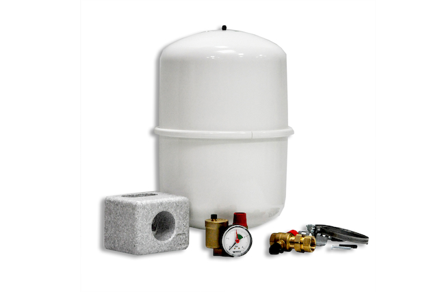 Roth Sicherheitspaket Heizung 50 Sicherheitspaket zur Einbindung in den Heizkreis. Im Lieferumfang befindet sich ein Ausdehnungsgefae50 Liter (Vordruck 1,5 bar), Kappenventil, Sicherheitsbau- gruppe (Sicherheitsventil, Manometer und automatischer Entluefter).