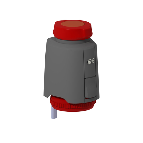 Roth Stellantrieb NC MO 230 Volt/1 Watt stromlos geschlossen Kompakter und hochwertiger Stellantrieb fuer die thermostatisch geregelte Heiz- /Kuehlregelung mit manueller Ventilverstellung fuer Wartungsarbeiten. aeurst energieeffizient durch nur 1 Watt Leistungsaufnahme (Einschaltstrom 275 mA) - mit rundum sichtbarer Stellungsanzeige, Anpassungskontrolle und Montagering fuer eine einfache Steck- Montage. Stellantriebe sind geeignet fuer die Ventile folgender Roth Verteiler: - Heizkreisverteiler 1" mit DFA, Heizkreisverteiler Thermaset - Industrieverteiler 1 1/4" und 1 1/2" Das wasserfeste Gehaeuse erlaubt die Montage in jeder Einbaulage. Schutzklasse IP 54 Mit fest montierter Anschlussleitung (Laenge 1 m) und Montagering: M 30 x 1,5.