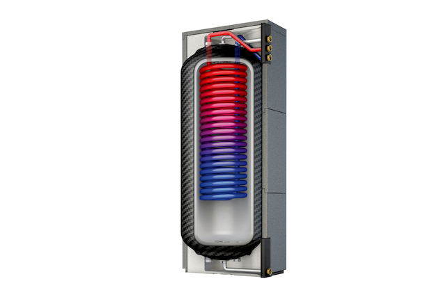 Roth Thermotank Quadroline TQ-TW 850 mit Thermocoat plus Die korrosionsfreien Roth Thermotanks Quadroline bestehen aus einzigartigem Kunststoff-Composite-Material mit Alu- Diffusionsschutz und aeurer EPS-Hoch- leistungsdaemmung. Ihre Dauerdruckbe- staendigkeit betraegt 3 bar und die max. Betriebstemperatur 90 Grad. Die Roth Thermotanks sind mit einer Transport- und Handlings-Vorrichtung versehen. In Verbindung mit dem extrem reduzierten Gewicht ist eine einfache Einbringung und Aufstellung moeglich. Die hocheffektive Waermedaemmung des Thermotanks Quadroline besteht aus auf- steckbaren Segmenten aus hochwertigem Hartschaum mit geringer Waermeleitfaehig- keit und einer hochwertigen Oberflaeche. Die quadratische Form der Daemmsegmente ermoeglicht die wandbuendige, platzsparende Aufstellung der Roth Thermotanks. Die Roth Thermotanks Quadroline sind an- schlussfertig verrohrt, die Anschluss- leitungen werden dabei in speziellen kopf- und fueitigen Elementen fixiert. Die Schnittstellen fuer die jeweiligen Systemanbindungen befinden sich als 1 1/4" Anschluesse mittig im unteren bzw. oberen Daemmsegment. Sie sind optimiert zur Vermeidung von Waermeverlust durch ungewollte Zirkulation. Diese Anschluesse werden herausgefuehrt und in einer Blende positioniert.