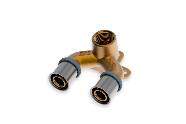 Roth U-Wandscheibe 20mm x 1/2"IG x 17mm Roth U-Wandscheibe mit 3-Loch Befesti- gungsfu Stuetzkoerper und zwei Edel- stahlhuelsen, zum Anschluss einer Ent- nahmestelle und zur Weiterfuehrung der Rohrleitung zum naechsten Anschluss- punkt. Hinweis: Geignet zur Montage auf Montageschienen.