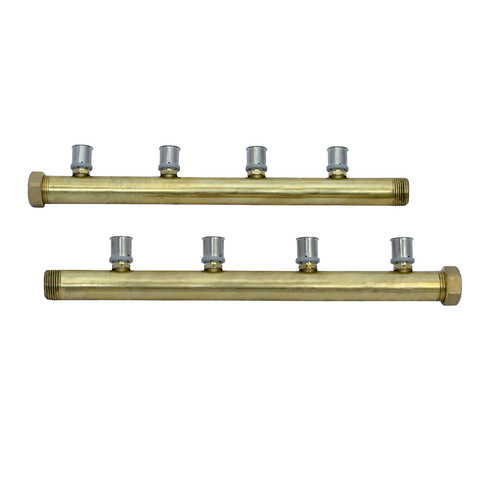 Roth Verteilerset 4fach 20mm L:435mm Sportboden/Tichelmann Zum Anschluss der Systemrohre Dimension 20 mm nach dem Tichelmannprinzip. 1 Stueck = Vorlaufstamm u. Ruecklaufstamm. Die Vorlauf- und Ruecklaufrohre werden flachdichtend mit 1" angeschlossen.