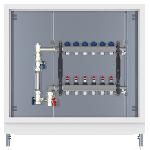 Roth Verteilerstation HK 4 edst.vormont. mit WMZ-Set senkrecht mit 3 Kugelhaehnen Roth vormontierte Verteilerstationen mit Heizkreisverteiler und Zubehoer. Bei gron Bauvorhaben erleichtern die vormontierten Verteilerstationen die Montage und sparen somit Zeit auf der Baustelle. Die Verteilerstationen werden nach Kundenwunsch zusammengestellt und mit einer entsprechenden Kennzeichnung auf einer Palette angeliefert. Bitte beachten Sie, dass je nach Auf- wand, mit einer Lieferzeit von ca. 3-4 Wochen gerechnet werden muss. Bei Fragen zur Zusammenstellung der Verteilerstationen bzw. zu Preisen und Lieferzeiten steht Ihnen Ihr Ansprech- partner im Aundienst oder unser Verkaufsteam zur Verfuegung.