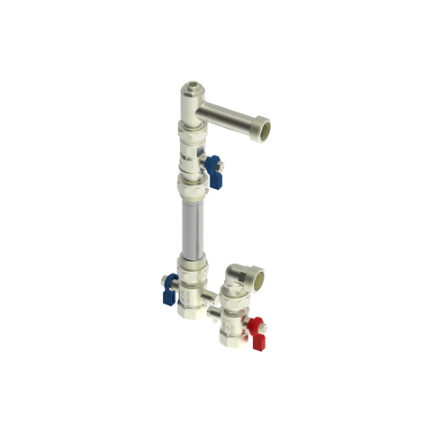 Roth Waermemengenzaehler-Set senkrecht mit 3 Kugelhaehnen/vernickelt Vorrichtung fuer den senkrechten Einbau eines Waermemengenzaehlers. Bestehend aus 3 separaten Kugelhaehnen und zusaetzlich einer Regulierverschraubung, einer Aufnahme fuer je einen direkt eintauchenden Temperaturfuehler und einem Passstueck fuer den Waermemengenzaehler 130 mm 1" und 110 mm 3/4". Das Set kann zur Wartung, Ein- und Ausbau des WMZ abgesperrt werden, ohne die Durchflusseinstellung zu aendern. Bei der Montage des WMZ-Sets an den Roth Edelstahl Heizkreisverteiler sind der Ruecklaufstamm oben und der Vorlaufstamm unten anzuordnen. Der Volumenmesser des WMZ wird im Ruecklauf-Strang montiert. Montagefertige Einheit im Karton verpackt. Anschluesse an Roth Edelstahl Heizkreisverteiler 1" AG, flachdichtend, 2 Flachdichtungen beigelegt.