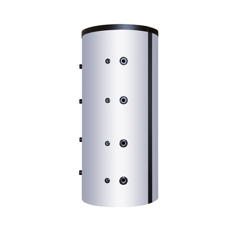 Roth Waermespeicher Trennpufferspeicher TPS 800 Trennpufferspeicher aus Qualitaetsstahl St 37-2. Pulverbeschichtung zur Paralleleinbindung fuer monovalente, bivalente und monoenergetische Waermepumpenanlagen. Der Speicher dient zur hydraulischen Trennung von Waermeerzeugerkreislauf zum Heizkreislauf (hydraulische Weiche). Mehrere Pufferspeicher koennen zu einer Batterie miteinander verbunden werden. Die Isolation 100 mm Vliesisolierung mit Polystyrol Aunmantel ist im Lieferumfang und in einem separaten Karton verpackt. Hinter jedem Anschluss befindet sich intern ein Prallblech. Wenn ein Heizstab eingeschraubt werden soll, muss bei diesem Anschluss das Prallblech nach innen gebogen werden.
