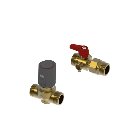 Roth Zonenregelventil-Set mit Stellantrieb AG Set bestehend aus 1 x 1" Regulierventil zur Durchflusseinstellung und Absperrung einschlieich Roth Stellantrieb 230 V 1 W NC und Kugelhahn. Das Set kann direkt an den Roth Edelstahl Heizkreisverteiler 1" montiert werden. Hinweis: Der Roth Stellantrieb darf nur mit dem speziellen Ventiladapter Mat.- Nr. 1135007498, Typ VA80 (hellgrau), eingesetzt werden. Der Adapter liegt dem Set bei.