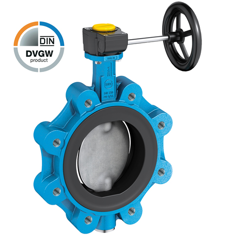 EBRO Absperrklappe Z014-A Anflanschg. TW mit Handgetriebe DN 250 PN 10 EBRO Absperrklappe Z 014-A mit Anflanschgehaeuse Trinkwasser, mit Handgetriebe DN 250 PN 10. Langsam schliessende Armatur zur Vermeidung von Druckschlaegen. Dichtschliessende wartungsfreie Absperrklappe zum Einsatz in Trinkwasseranlagen. Mit Gewindeaugen zum Anflanschen fr Flansche nach DIN 2632/33. Gehaeuse: EN GJS 400-15 (GGG40) Pulverbeschichtet, blau Baulaenge: DIN 3202-K1 EN 558 Reihe 20 Manschette: EPDM KTW Scheibe: Edelstahl AISI 316, ab DN 250 Edelstahl AISI 304 Wellen: Edelstahl AISI 304 Betriebsdruck: max. 16 bar Differenzdruck: max. 10 bar Betriebstemperatur: -10 C bis max. +100 C Ausfuehrung nach Heizungsanlagenverordnung. DVGW-Zertifiziert. Registrier-Nummer NV-6201BO0191 mit Handgetriebe DN 250 PN 10