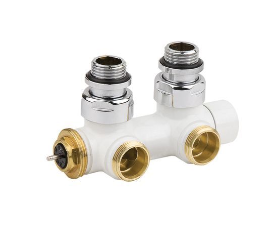 Product information "Flamco Design-Ventilhahnblock Eck 738W G1/2a x G3/4a EK, M30x1,5, MS weiss C738025"