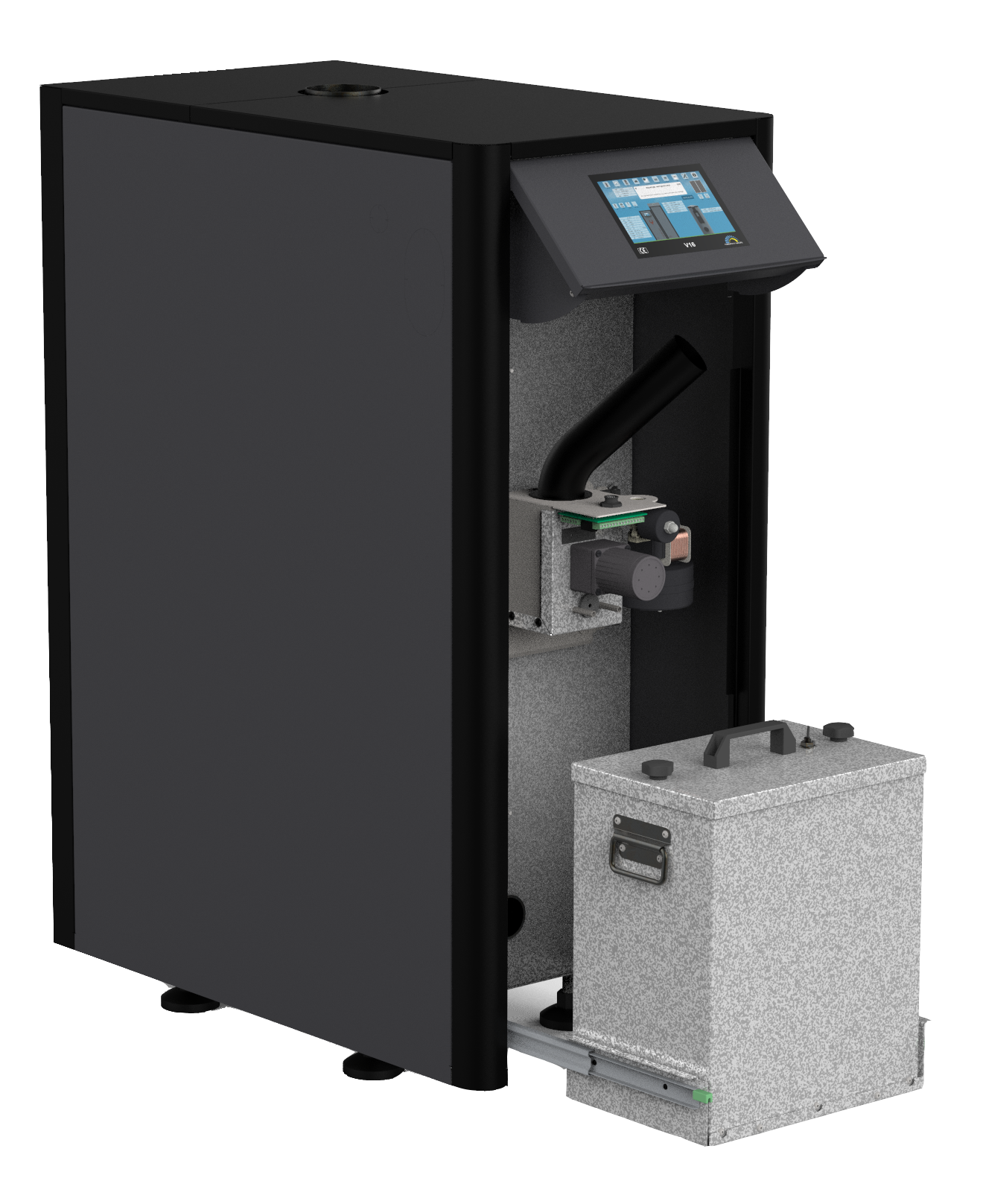 Die Pelletkessel Systeme werden als Komplettpaket, bestehend aus: Kessel, Pelletbrenner, Regelung, Kompressorreinigung geliefert.